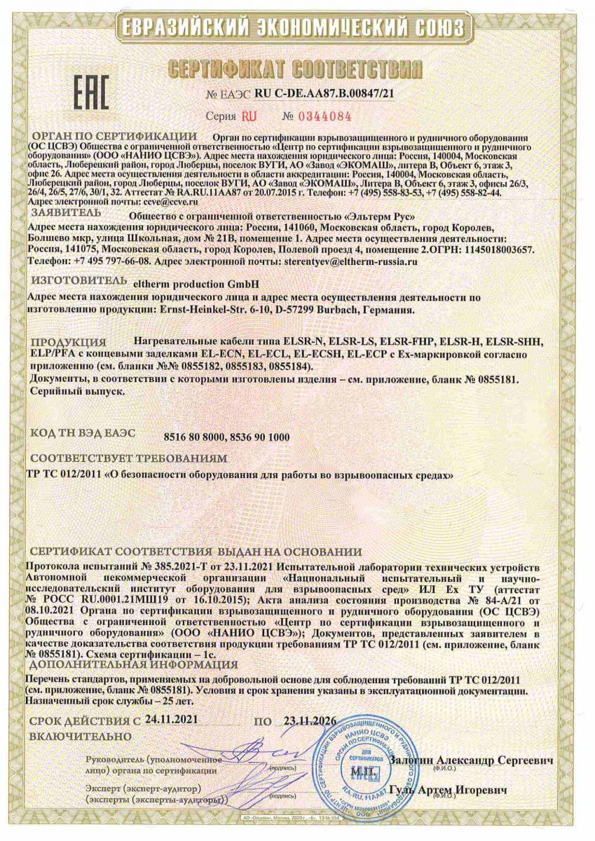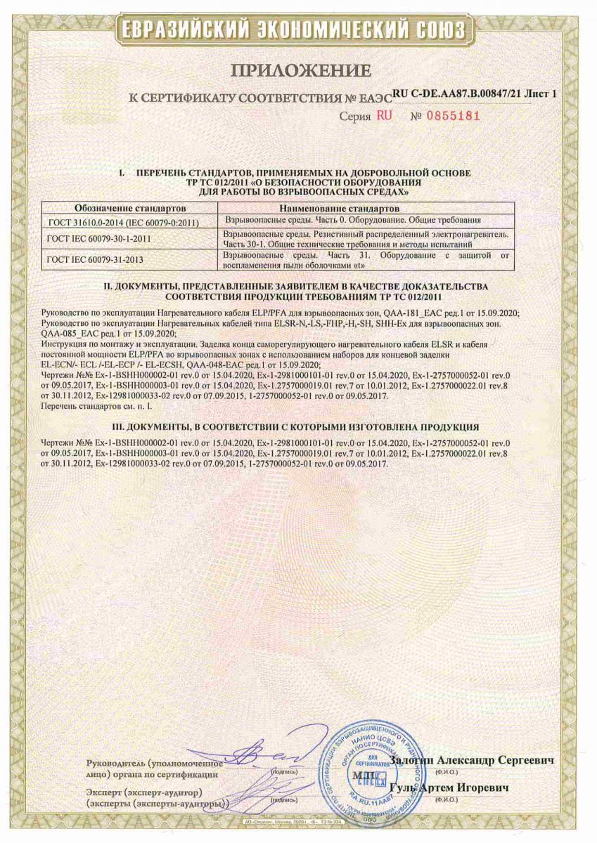 Сертификаты ELSR-SH и EL-ECSH